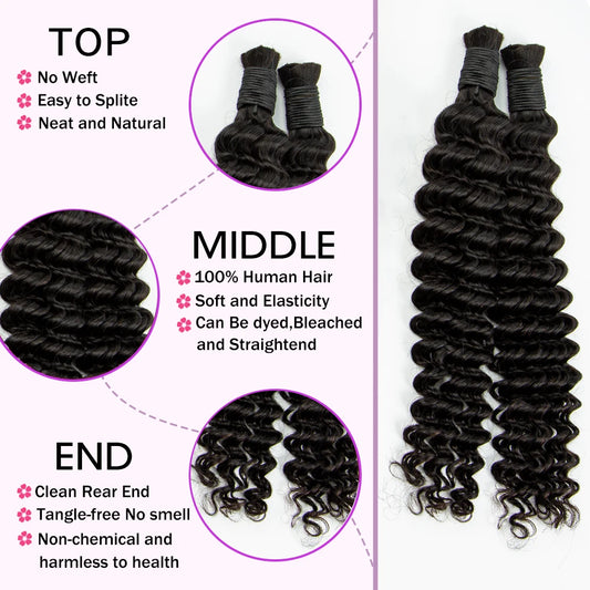 Human Braiding Hair Deep Wave Bulk for Braiding No Weft Deep Curly Braiding Hair for Boho Braids Brazilian Virgin Human Hair